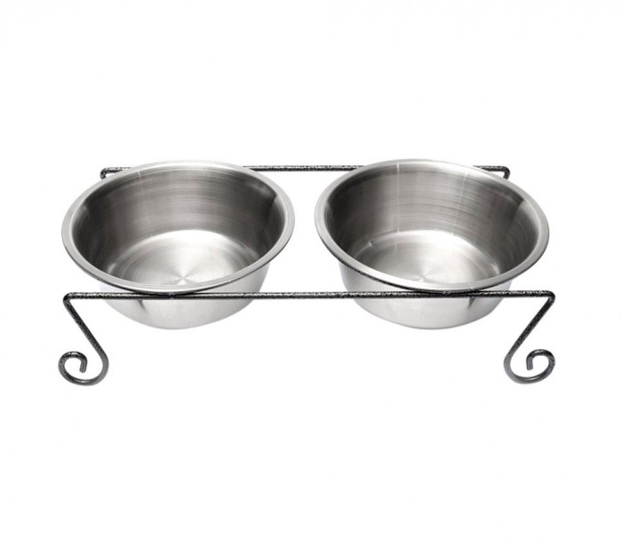 Por lo general, todos los perros tienen al menos dos cuencos disponibles, uno para el agua y otro para el pienso. Pero si usted no quiere que estén esparcidos por la casa, puede obtener un cómodo plato doble de acero, colocado sobre una estructura metálica elevada con patas de goma antideslizantes.