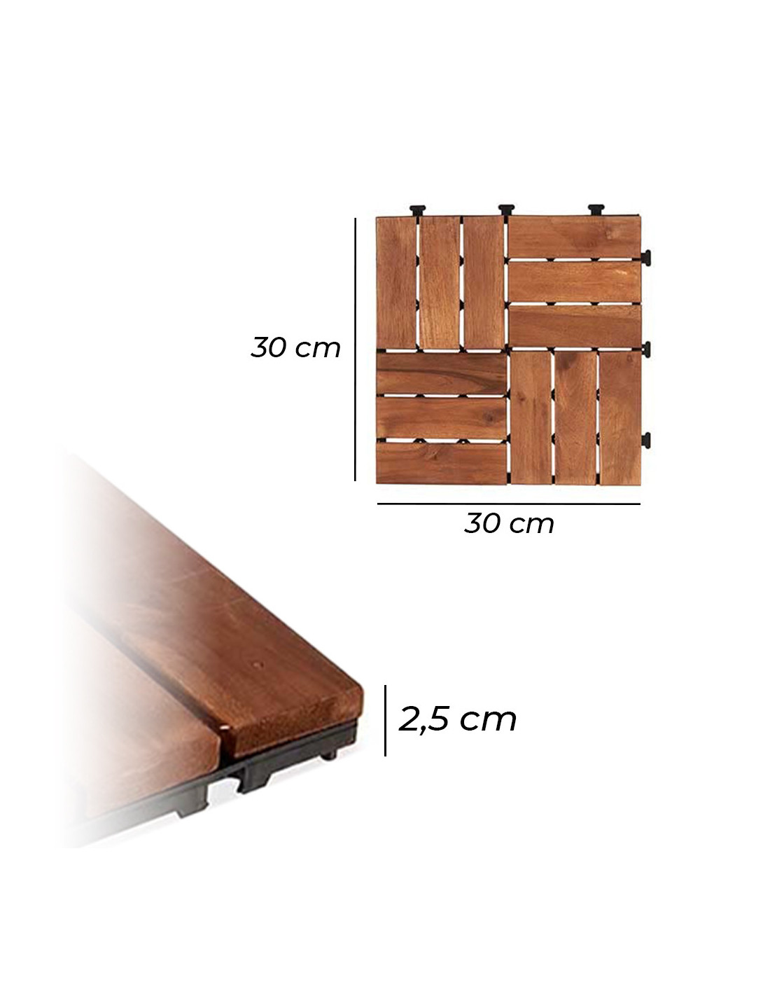 Paquete de 6 baldosas de madera de acacia 30x30x25 para exteriores.