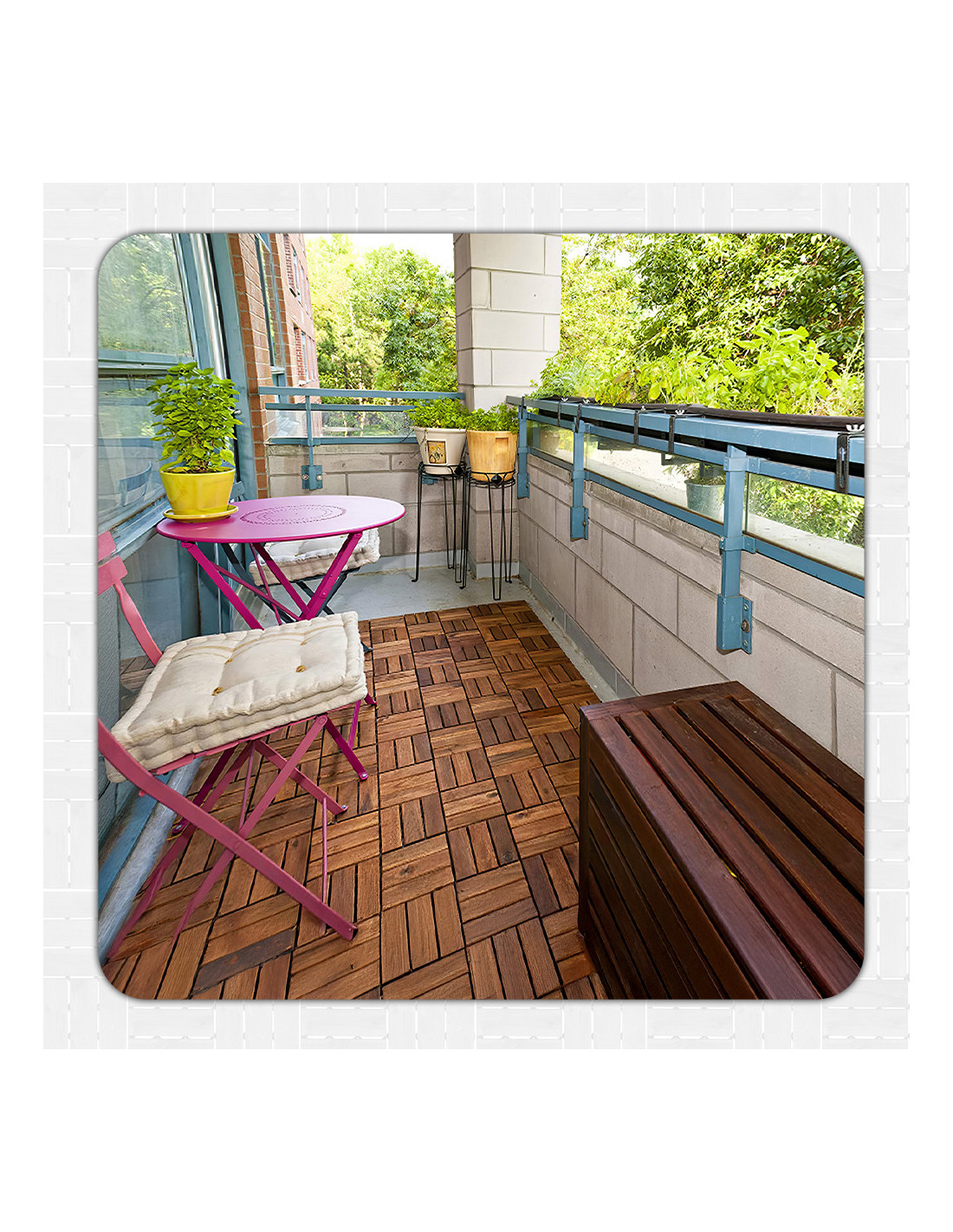 Las baldosas de acacia de color miel son perfectas para quienes desean pavimentar espacios exteriores con un material natural que se integra armoniosamente en el jardín. Con una instalación rápida y sencilla, estas baldosas ofrecerán un suelo duradero, estéticamente agradable y resistente en el tiempo, lo que ayudará a crear un ambiente acogedor y natural en tu espacio exterior.