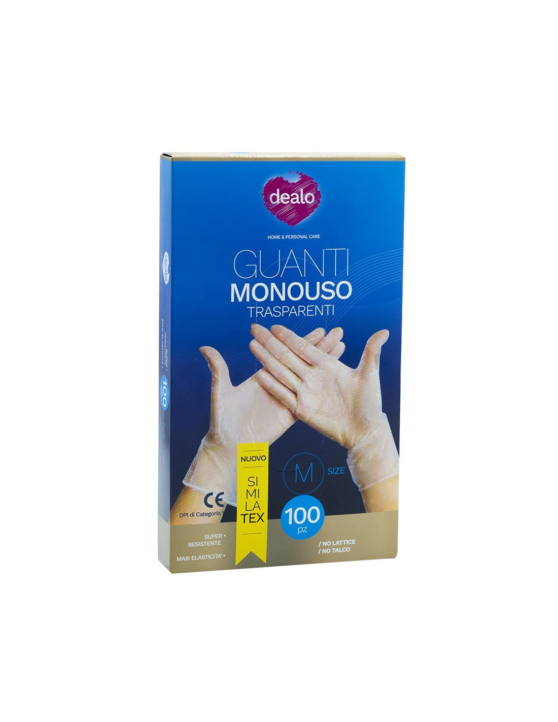 Art. 096276 100 uds Guantes desechables Dealo transparente talla M sin látex