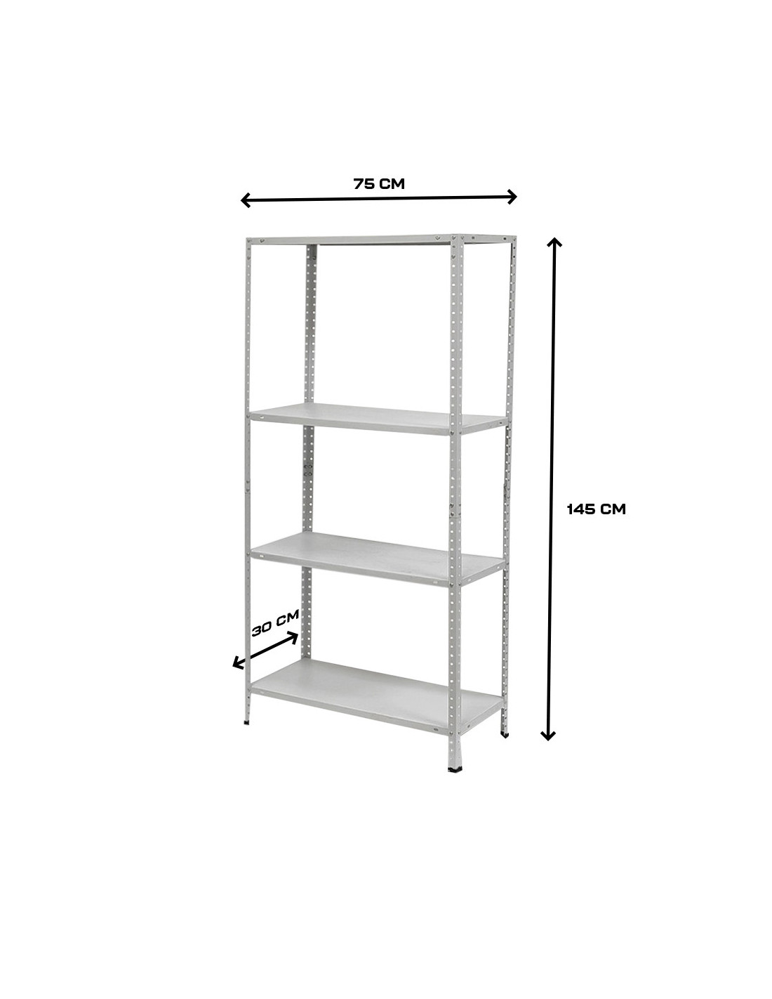 Estantería de metal blanca de 4 estantes, 145x75x30 cm, capacidad 160 kg.