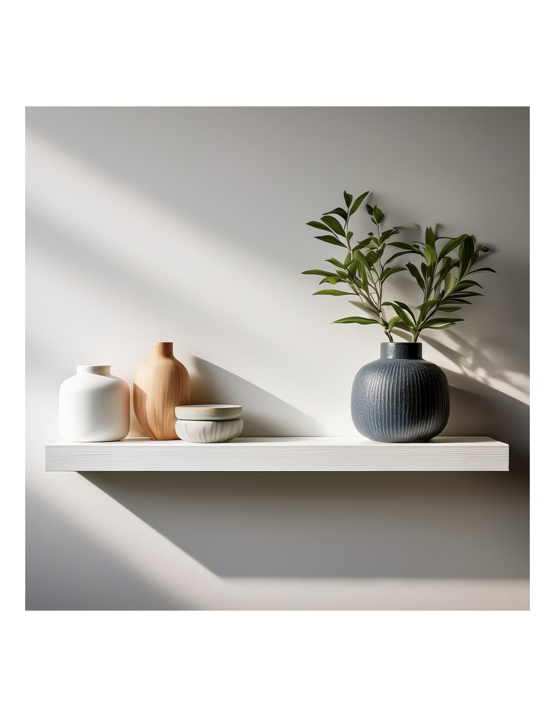 Hecha de madera MDF de alta calidad, esta estantería es ideal para guardar libros, objetos decorativos, utensilios de cocina o accesorios varios. Su diseño oculto garantiza un aspecto limpio y elegante: después de la fijación, los tornillos de anclaje quedan invisibles, dando un efecto suspendido y minimalista.