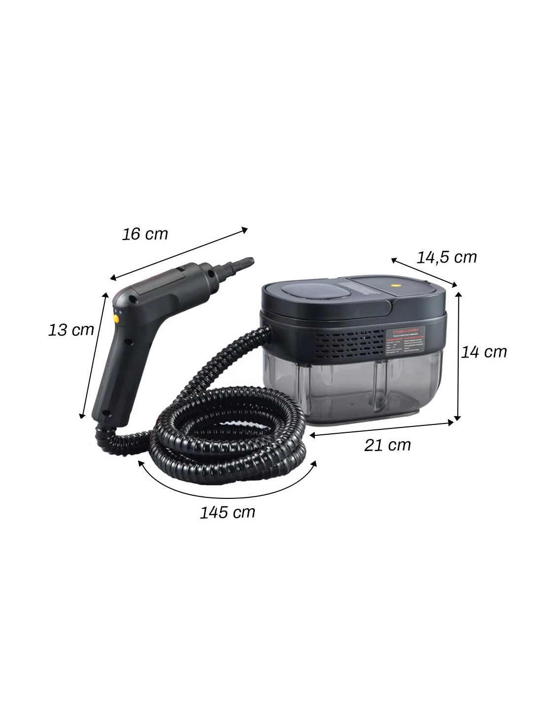 El limpiador a vapor multiusos, el aliado perfecto para una limpieza profunda y versátil en cada rincón de tu casa y más allá. Diseñado para satisfacer las necesidades de limpieza doméstica, este dispositivo es ideal para todo tipo de suelos, puertas, ventanas, grietas, electrodomésticos de cocina, colchones, sofás y alfombras. No solo para el hogar, sino que también es extremadamente útil para la limpieza a fondo de los interiores de tu coche. Con una capacidad de depósito de agua de 1600 ml, el limpiador ofrece tres niveles de intensidad y una regulación personalizable del consumo de agua, de 25 a 45 ml por minuto, garantizando siempre la presión adecuada para cada superficie. Los accesorios incluidos, con un acoplamiento fácil y rápido, incluyen: