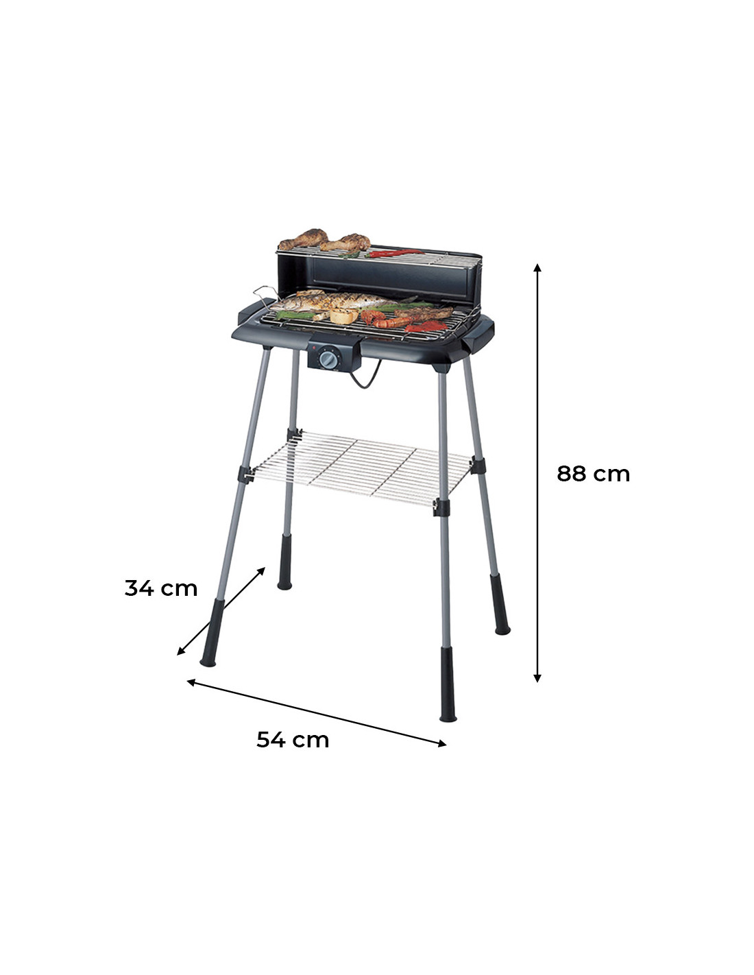 Con una estructura de 88 cm de altura, ofrece una ergonomía cómoda, evitando la necesidad de agacharse durante la cocción. La parrilla principal de acero inoxidable es lo suficientemente amplia para cocinar abundante carne, pescado y verduras, mientras que la parrilla pequeña adicional permite cocinar otros alimentos o utilizarla para platos más delicados.