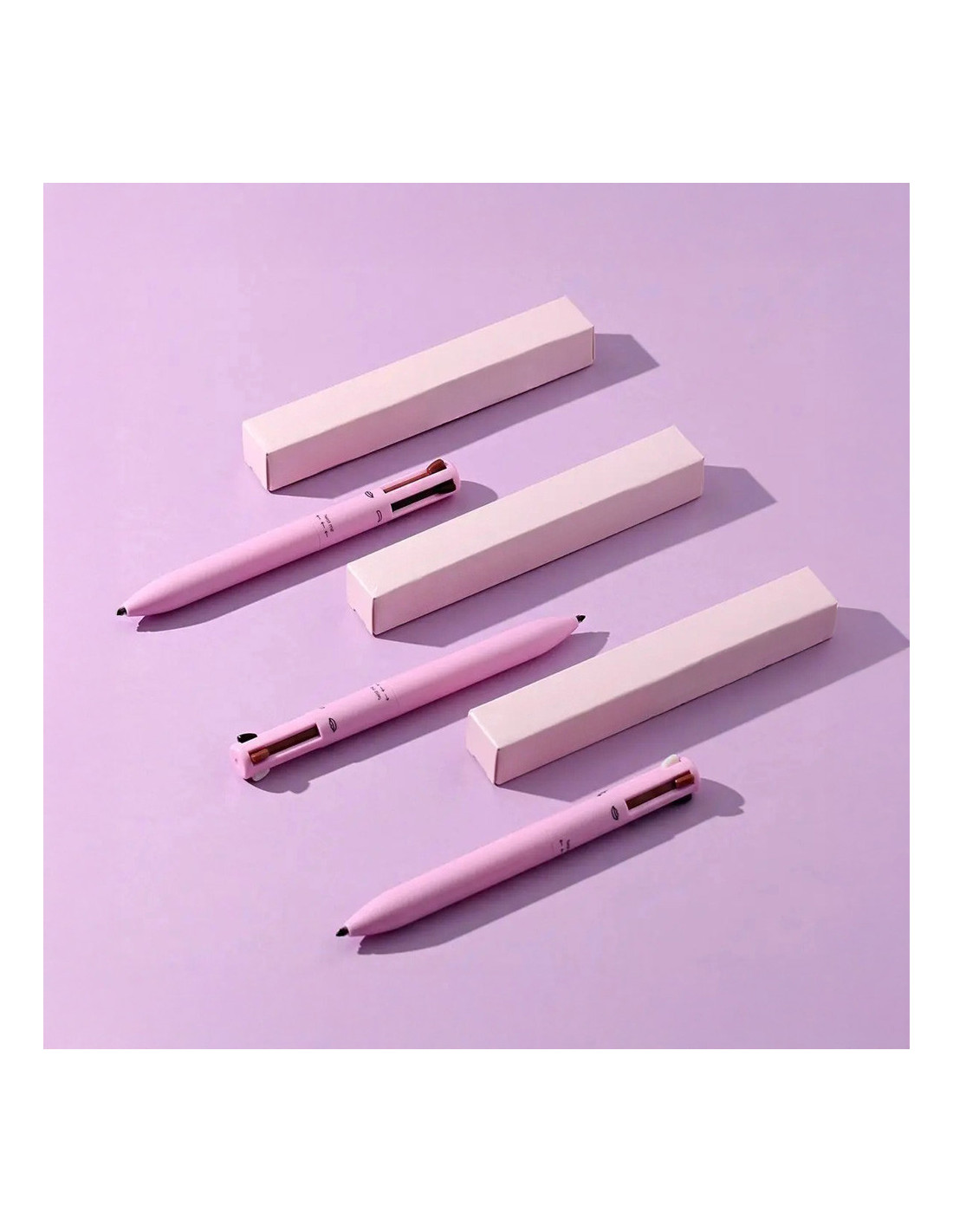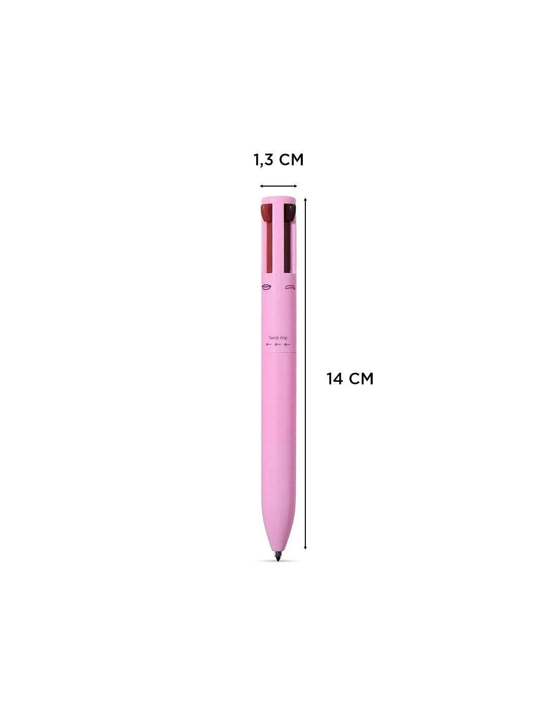 La pluma de maquillaje 4 en 1 es la compañera ideal para un maquillaje completo y versátil en una sola herramienta. Incluye una punta de lápiz labial en rosado oscuro con efecto mate, una punta eyeliner negra para una mirada definida, una punta perlada para iluminar el contorno de ojos y una punta para definir las cejas, lo que permite crear looks completos con extrema facilidad.