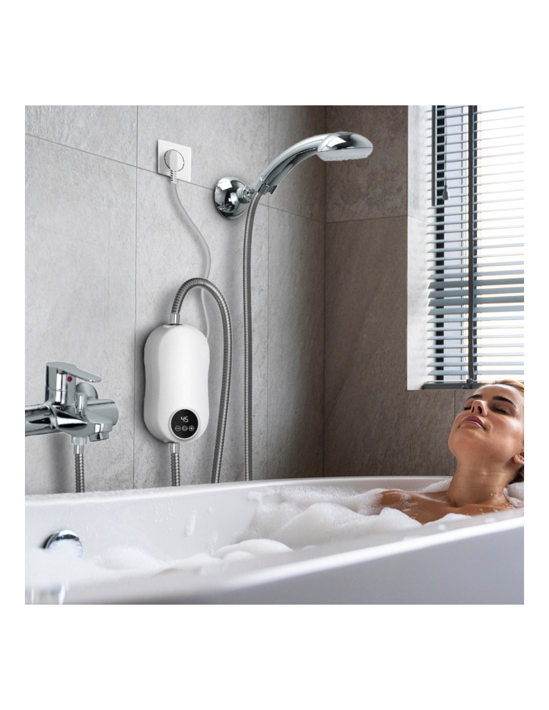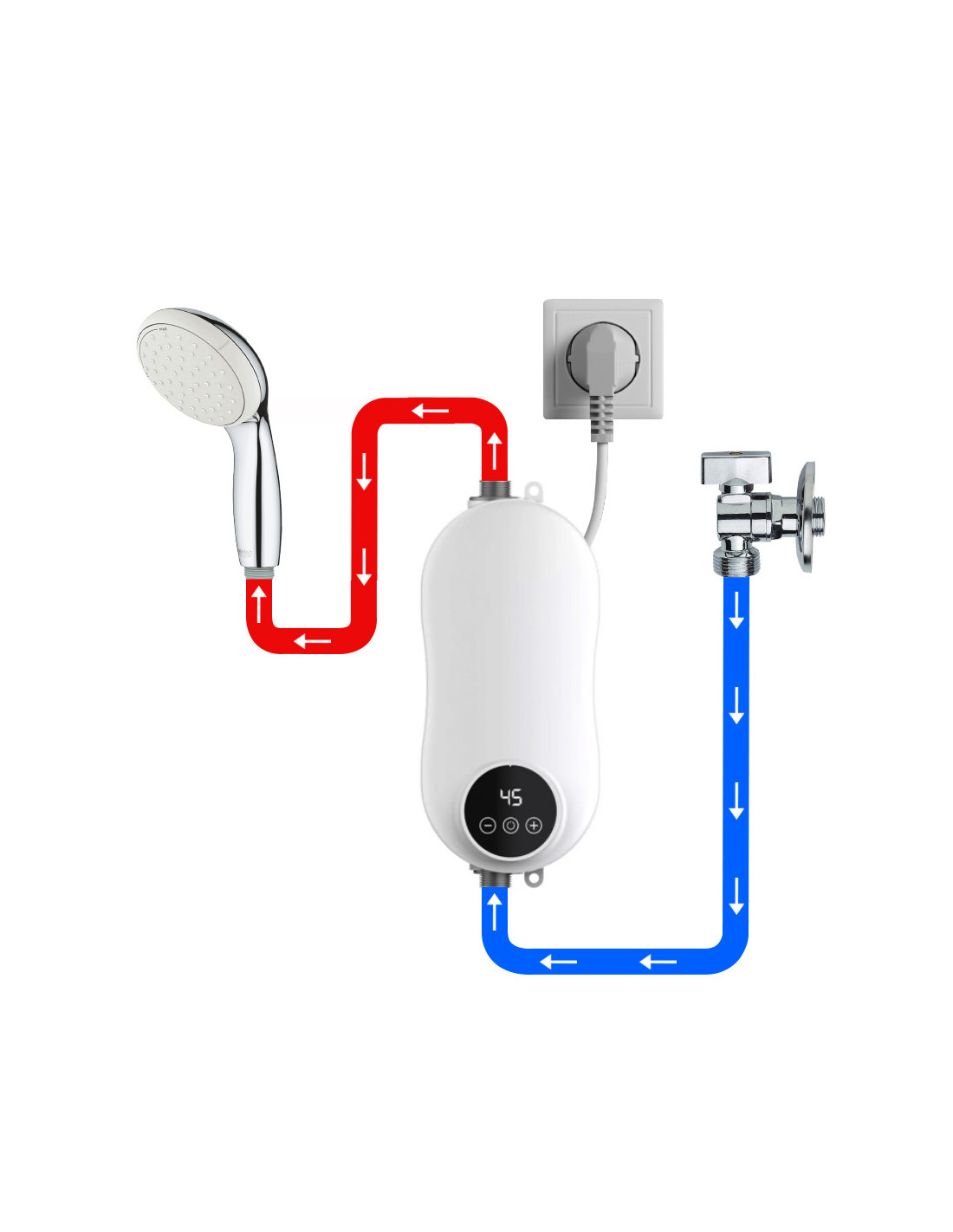 El mini calentador de agua eléctrico es la solución ideal para obtener agua caliente instantánea en cualquier entorno, sin necesidad de instalaciones complejas. Gracias a su potencia de 3500W, es capaz de calentar el agua en pocos segundos, garantizando un flujo constante y estable, con una presión de agua regulable de 0,04 Mpa a 0,4 Mpa.