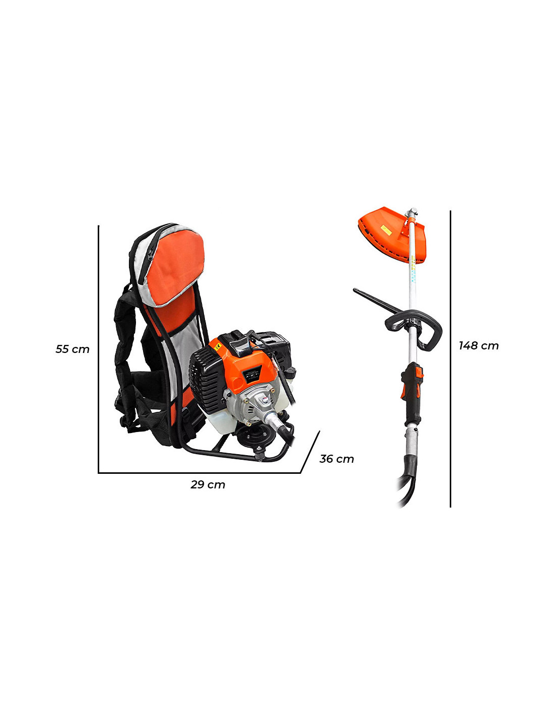 Afronte incluso los trabajos de limpieza más intensos con la desbrozadora de mochila de gasolina de 52cc, diseñada para garantizar el máximo rendimiento y comodidad durante el uso. Gracias a la configuración de mochila, el peso se distribuye bien, lo que la hace ideal para intervenciones prolongadas en terrenos accidentados, maleza, áreas no cultivadas y a lo largo de muros bajos. Equipada con un motor de 2 tiempos de 52cc con una potencia de 2.2 CV a 8000 rpm, esta desbrozadora ofrece un rendimiento fiable incluso en contextos semiprofesionales, combinando potencia y precisión.