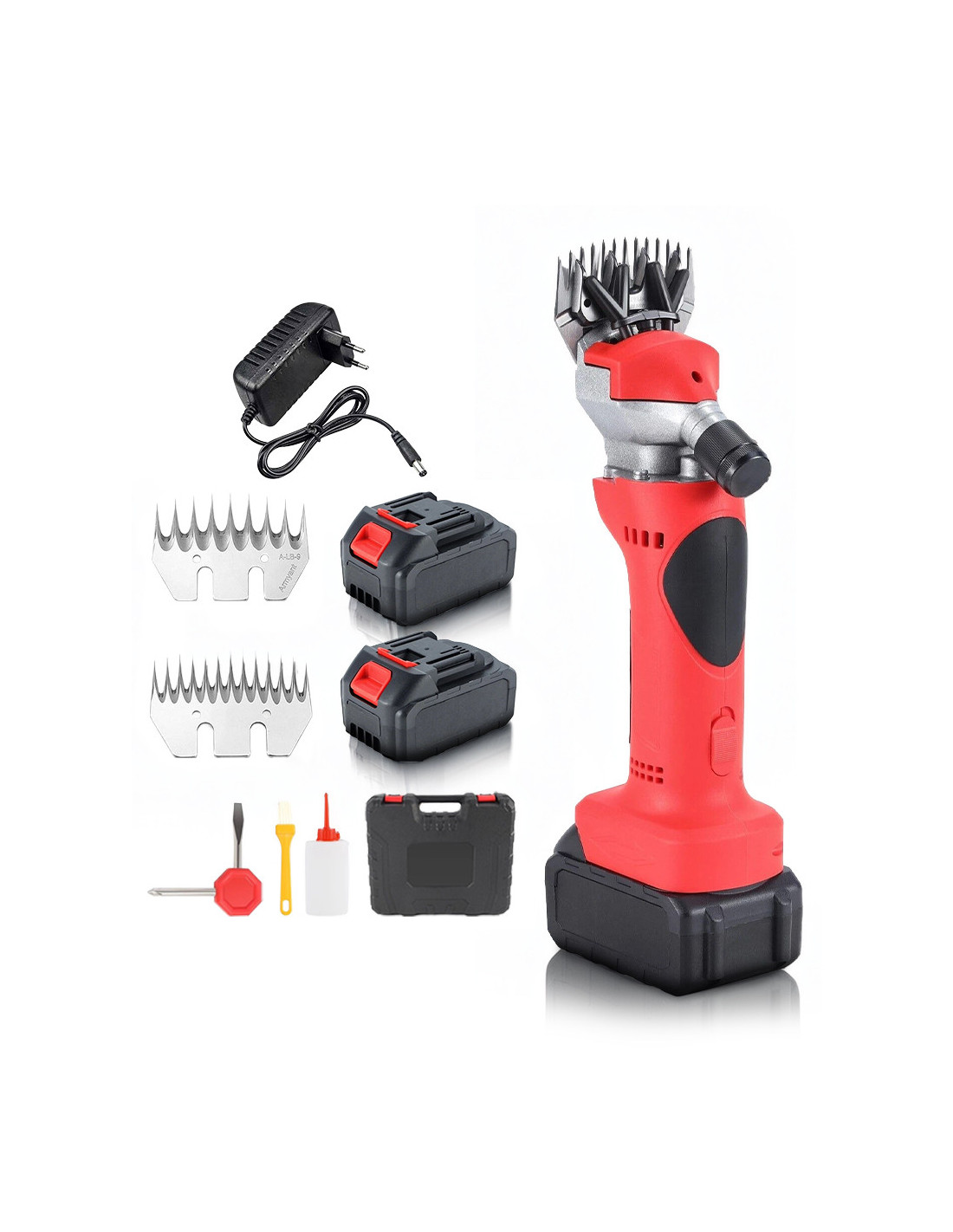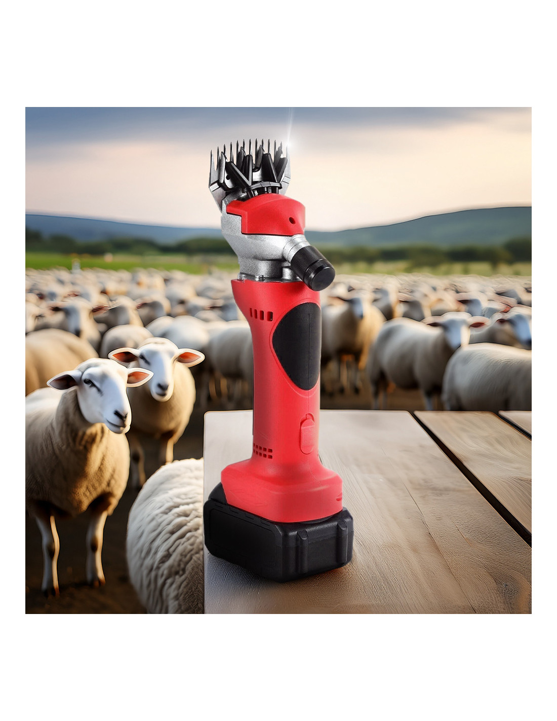 Esquiladora profesional a batería recargable de 48V, ideal para el esquilado eficiente y seguro de ovejas, cabras y otros animales de lana. Esta herramienta combina potencia, autonomía y practicidad, gracias al motor de alto rendimiento y a la doble batería de litio incluida, que garantiza tiempos de uso prolongados sin interrupciones.