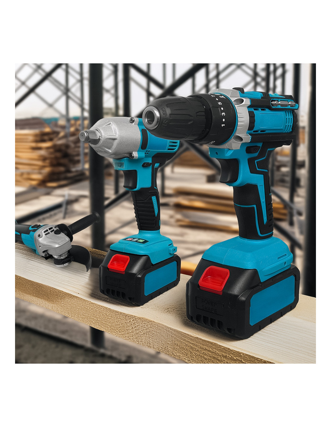 Mediawave Store- Kit completo con atornillador brushless, taladro atornillador y amoladora angular.