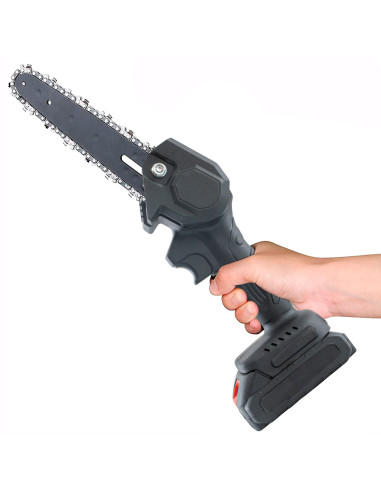 Esta motosierra a batería garantiza un corte regular y preciso para tus trabajos de bricolaje y jardinería en casa. Equipada con un motor de cobre, que es muy potente, proporciona velocidades de corte excepcionales inesperadas para un dispositivo tan manejable y compacto. Al usarlo por primera vez, carga completamente la batería primero.