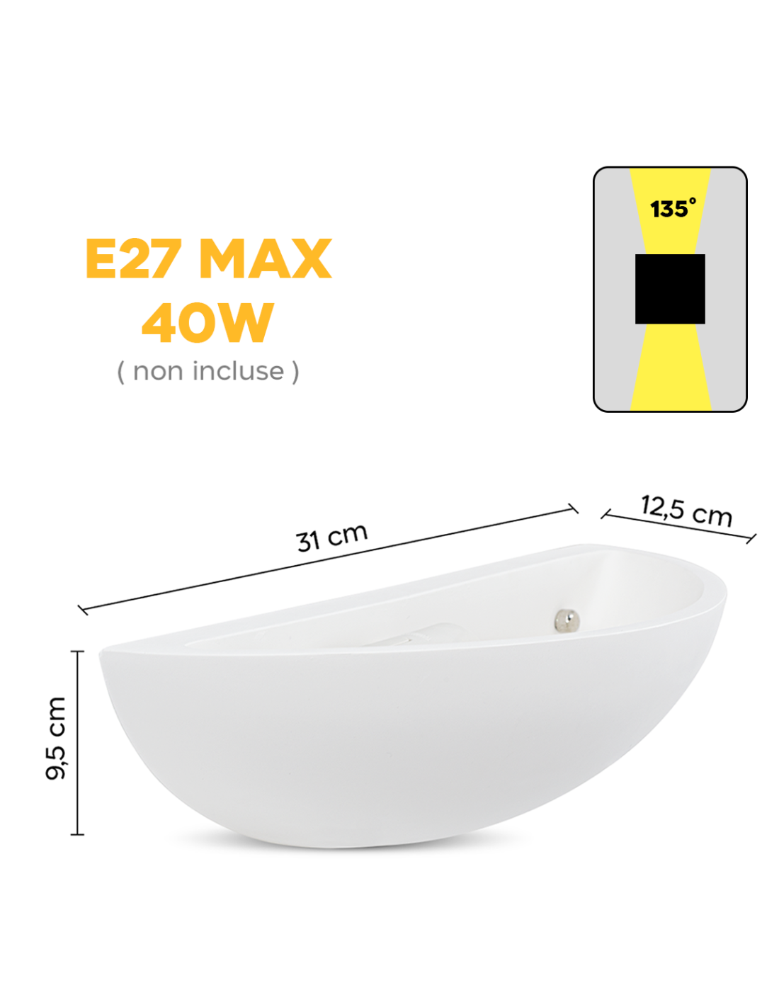 Elegante aplique de escayola, diseño apto para interiores con diseño actual. Extremadamente decorativa y versátil, puedes pintarla, decorarla y personalizarla con los colores que quieras y según tu decoración. Una vez instalados en la pared, garantizan un excelente efecto luminoso, creando juegos de luces perfectos. El material exterior de la lámpara está hecho de yeso duradero y fácil de limpiar. Equipado con casquillo E27, compatible con la mayoría de lámparas del mercado: halógenas, led o inalámbricas (bombilla NO incluida). La instalación es sencilla, puedes ayudarte con las instrucciones de la caja. Crea una luz suave y cálida para iluminar la sala de estar, la sala de estar, el dormitorio. También perfecto para cocinas, restaurantes, estudios, creando una luz reflejada y fría. Los apliques de escayola se adaptan a cualquier tipo de estilo y decoración.