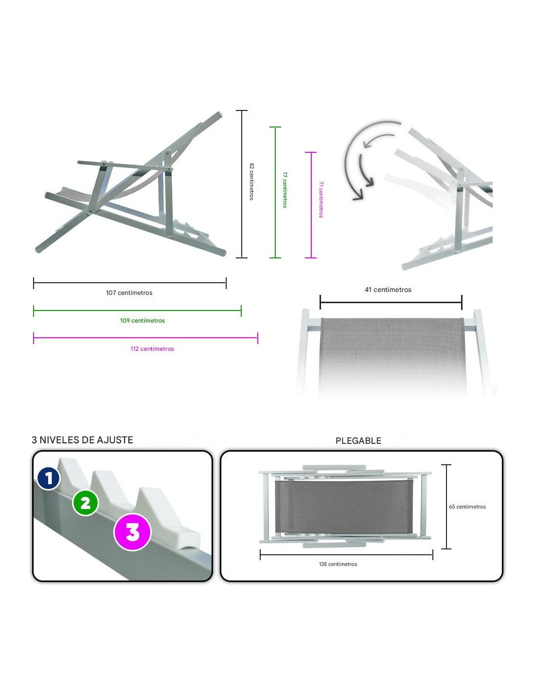 - Ajustable en 3 Posiciones: Se adapta a tus necesidades de comodidad y relax.