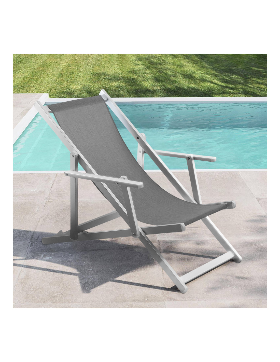 Silla Reclinable Plegable Napoli con Brazos, Estructura de Aluminio y Textilene