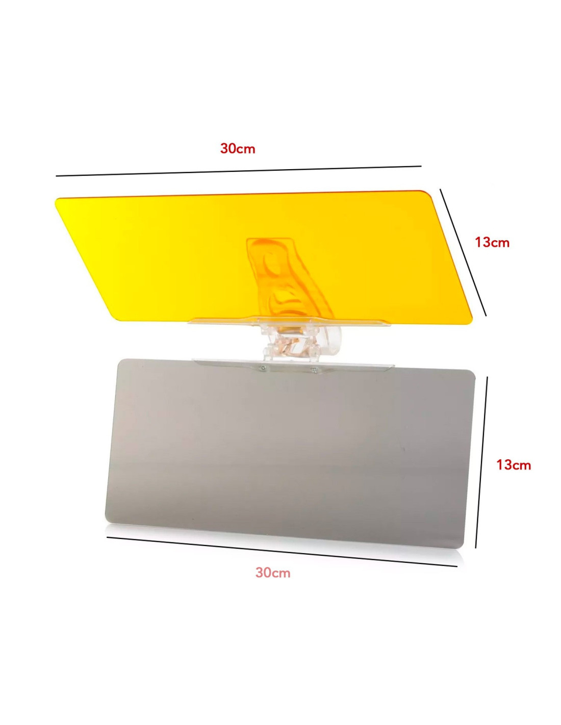 Es el revolucionario visor universal de alta definición que le ayuda a tener una visión clara y de alta definición tanto de día como de noche, en caso de resplandor de la luz solar gracias al sistema antirreflejo o en condiciones de poca visibilidad debido al mal tiempo. Se adhiere a cualquier parasol en un instante y se baja con un dedo. El visor está formado por 2 lentes: solo baje el del día para oscurecer los deslumbrantes rayos del sol; luego, simplemente baje la lente para la noche que propaga las luces para aumentar la claridad y ver mejor, en alta definición, sin forzar la vista. Es ideal durante el día cuando se conduce con el sol delantero, o en cualquier caso cuando las condiciones de iluminación varían continuamente. Al atardecer, entre el día y la noche, cuando el brillo disminuye gradualmente.