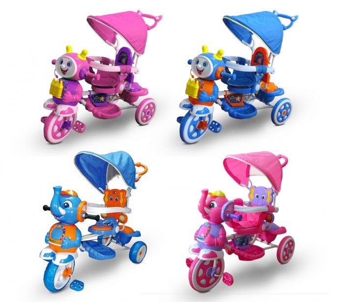 LT813 Triciclo con pedales para bebés con capota y asiento acolchado