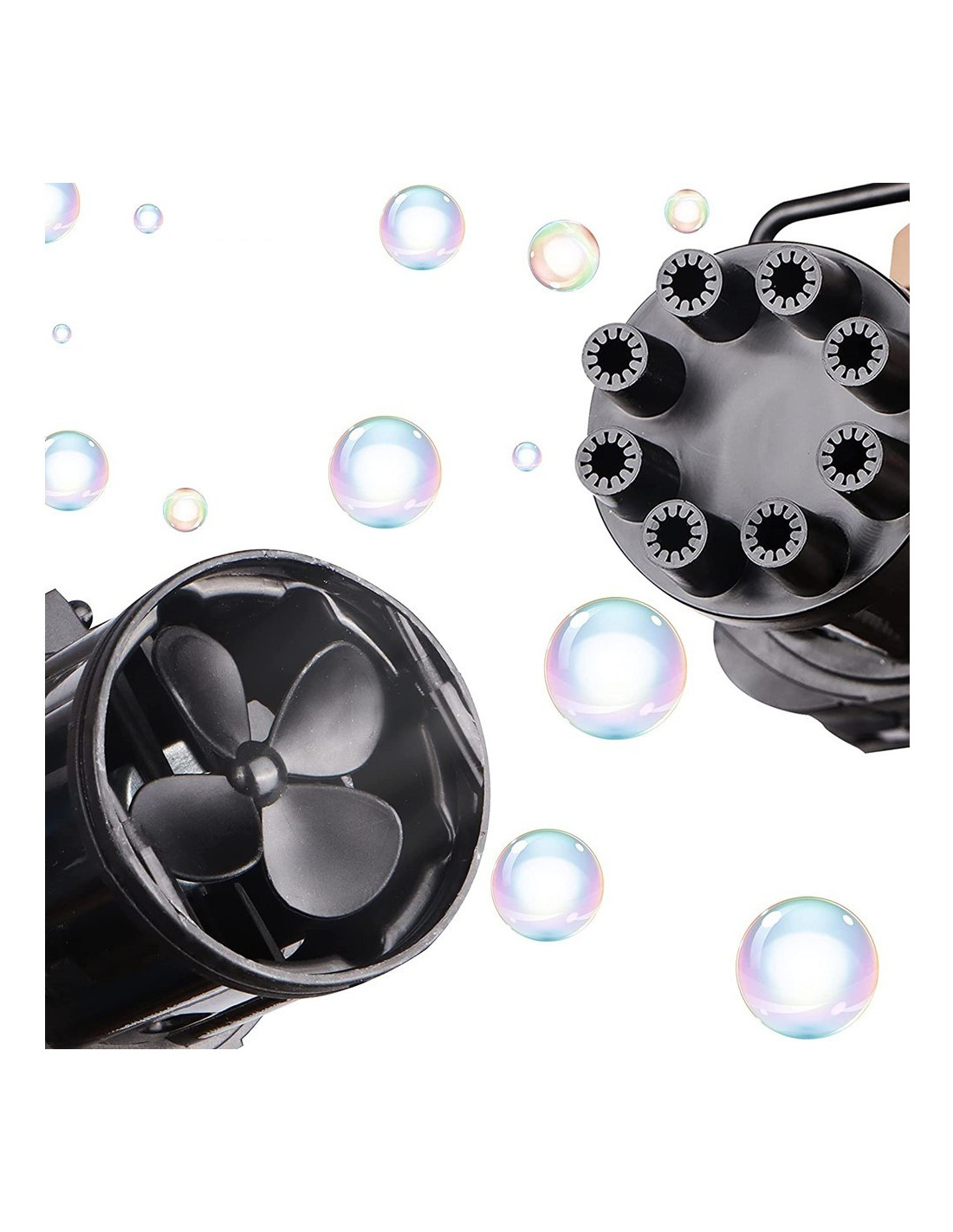 Hecho de material ABS, duradero y seguro. La máquina de burbujas es ideal para que los niños jueguen y se entretengan. Tiene 8 agujeros, puedes rociar cientos de burbujas de colores al mismo tiempo.
