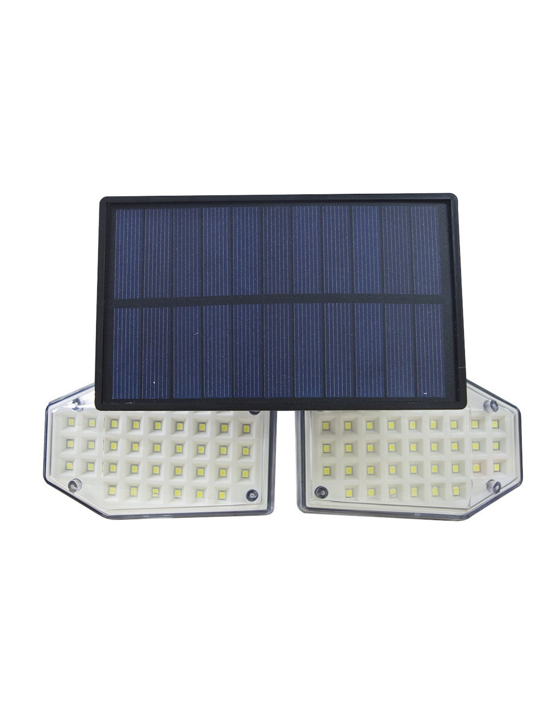 A diferencia de otras lámparas solares, esta lámpara utiliza un diseño innovador de 2 cabezales para proporcionar iluminación de gran angular. Puede mover las cabezas hacia arriba y hacia abajo libremente para asegurarse de que se iluminen más puntos muertos.