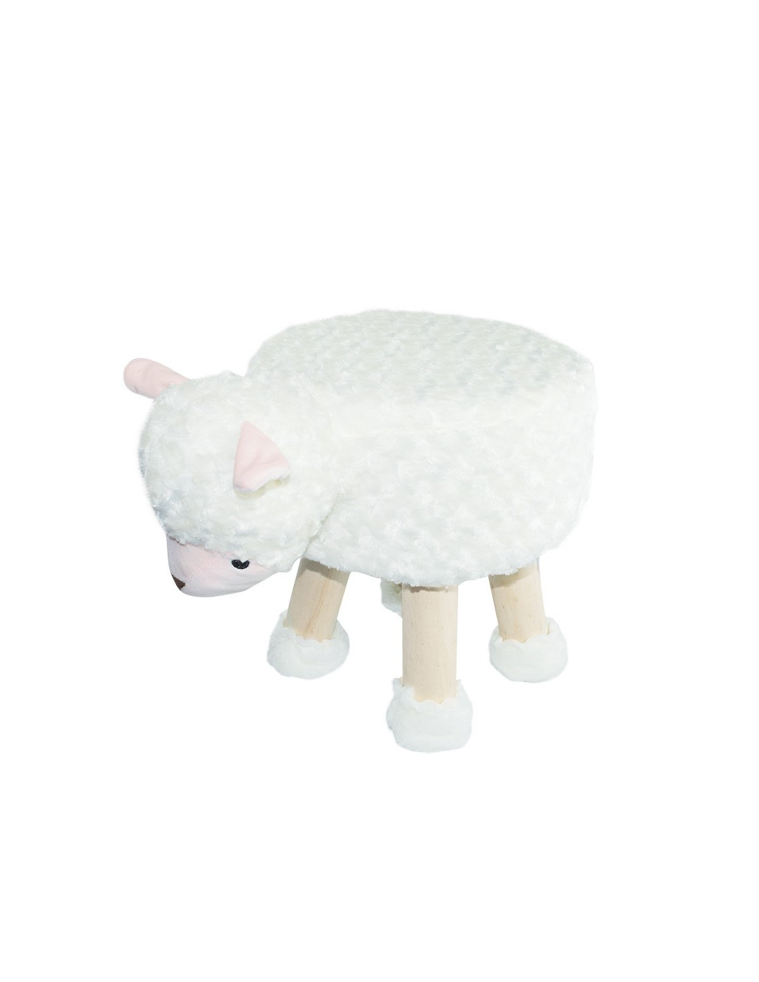 372025 Puf en tejido suave y blandito forma de Oveja en madera 40x27xH30cm