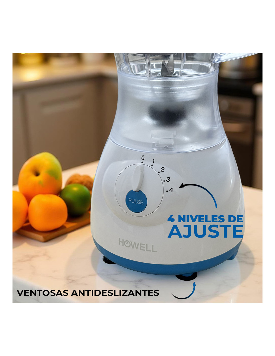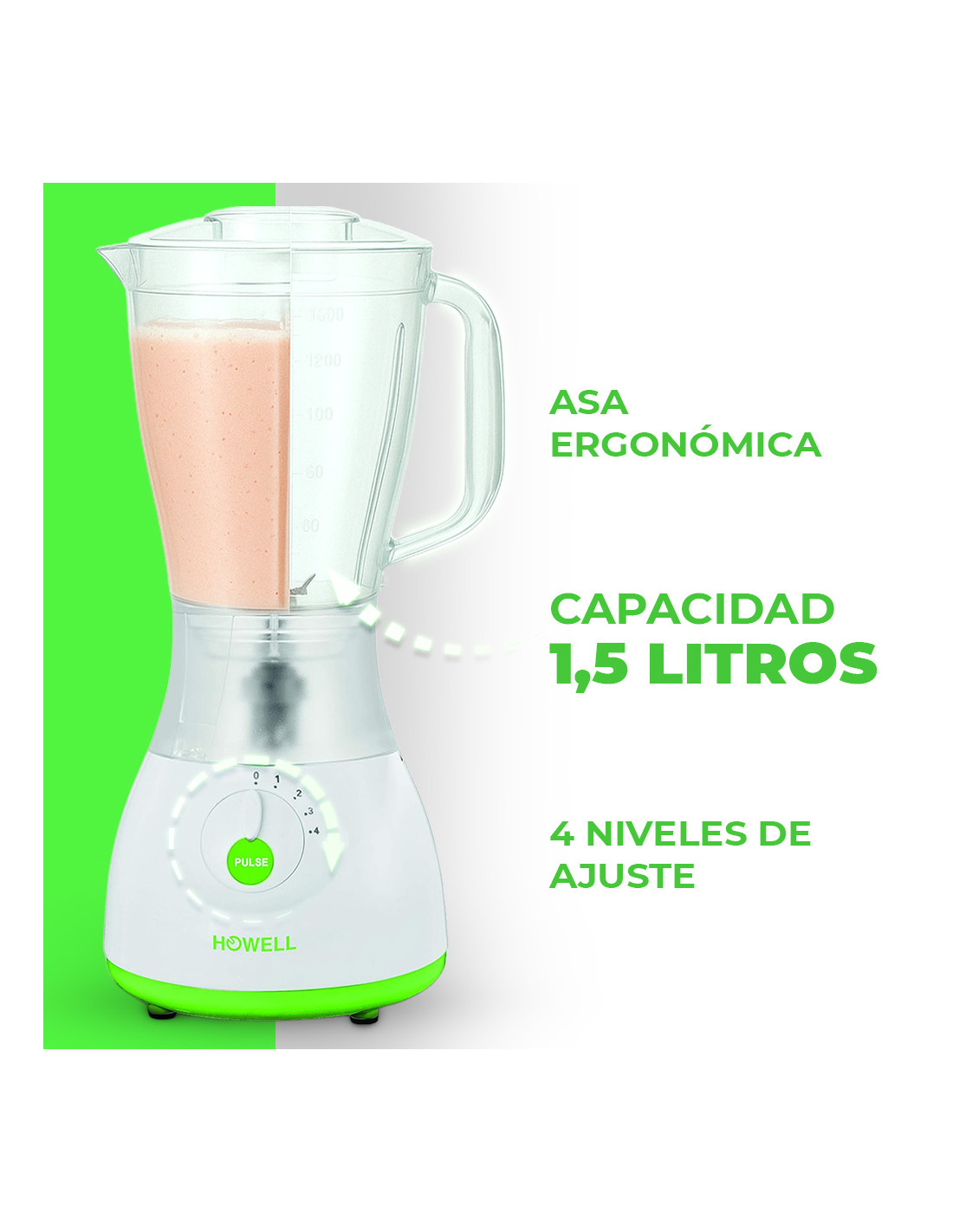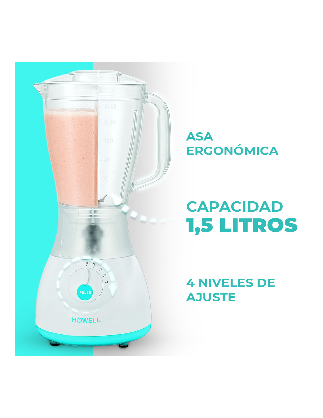 Licuadora HOWELL 350W, 1.5L, 4 Vel., Cuchillas Acero.