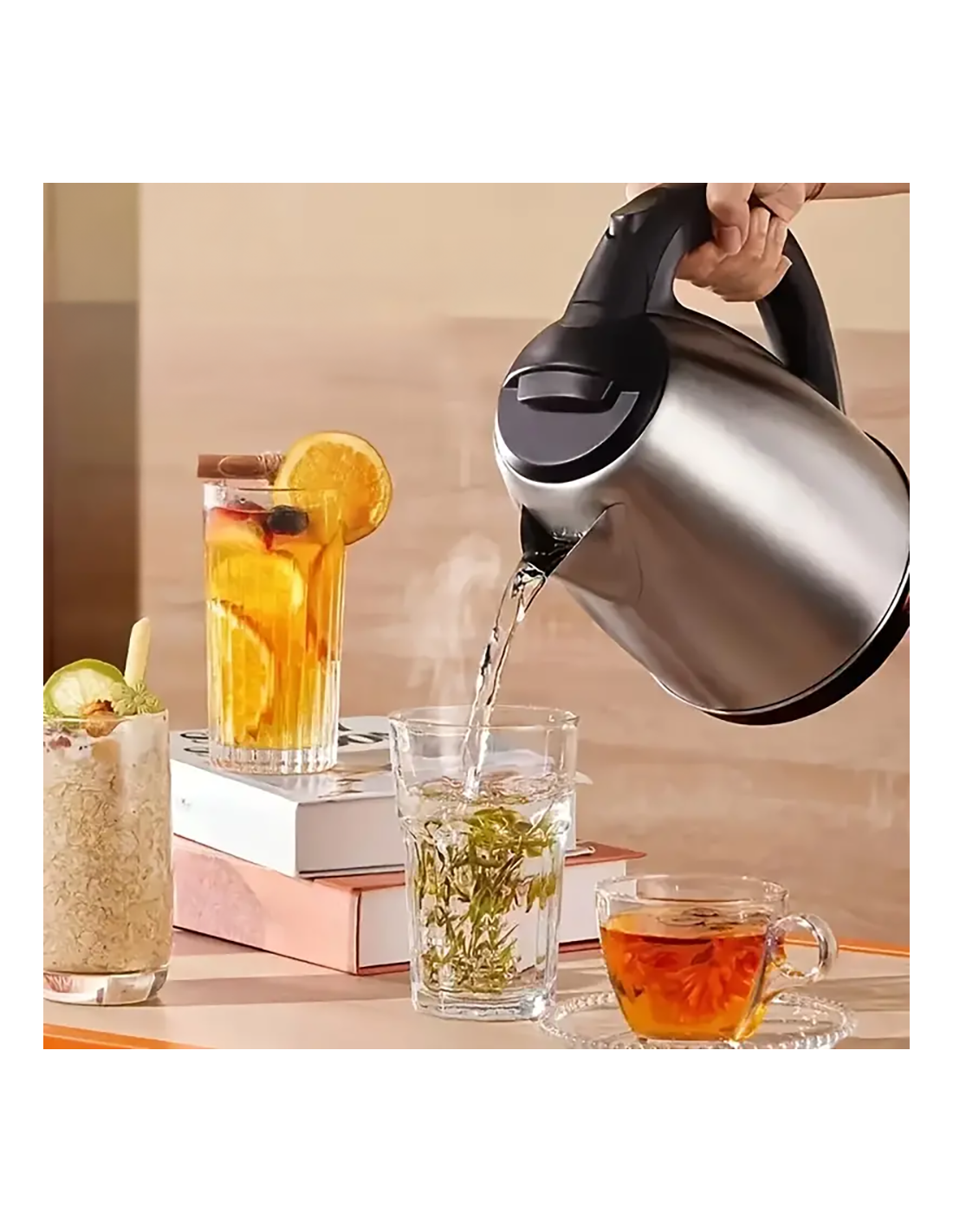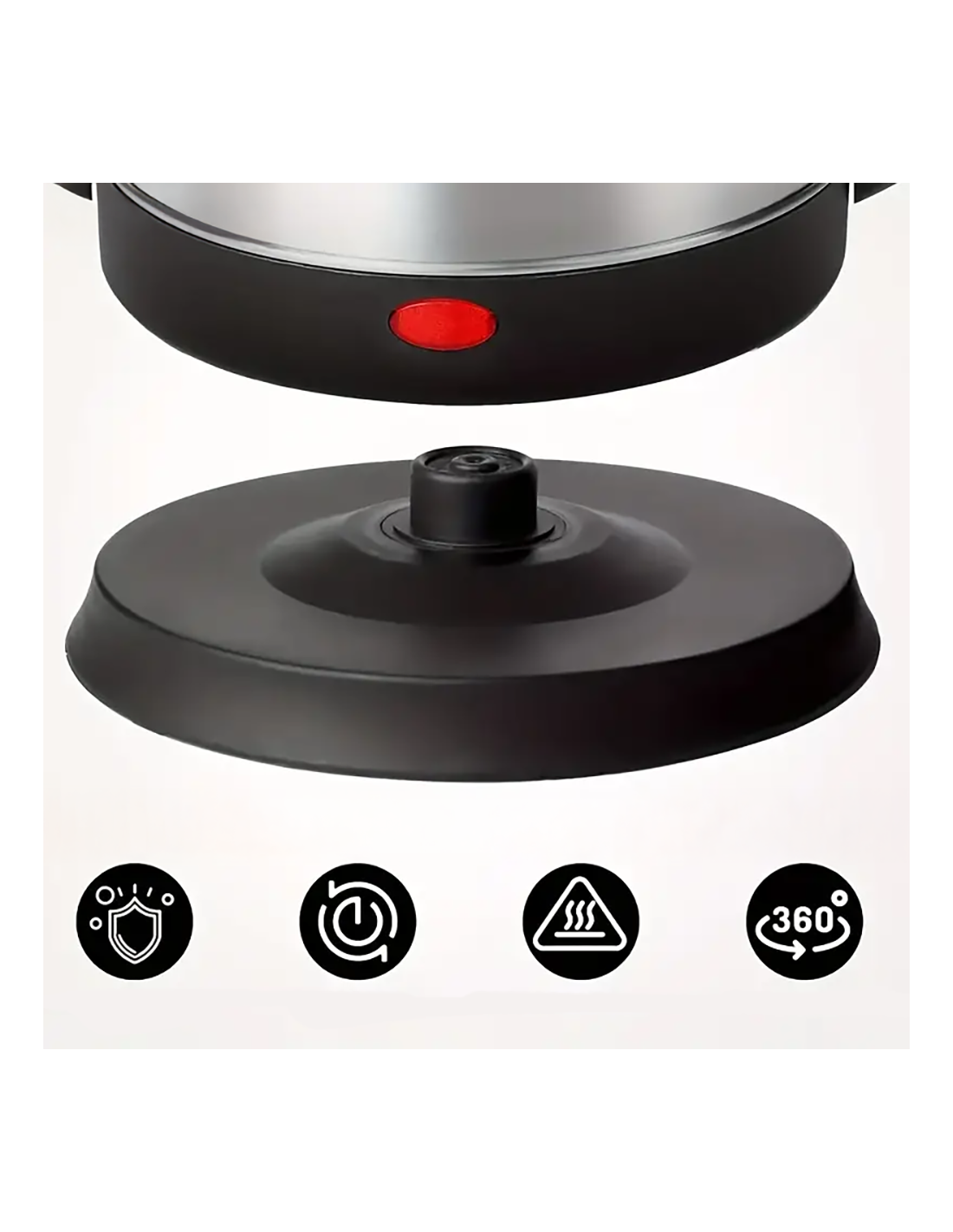 El hervidor eléctrico de 1.8 litros es la solución ideal para preparar rápidamente tés, infusiones, café soluble y otras bebidas calientes. Con una potencia de 1500W, hierve el agua en pocos minutos, garantizando practicidad y eficiencia en la cocina. Fabricado en acero inoxidable resistente, asegura durabilidad y seguridad alimentaria. Su base giratoria de 360° permite un fácil posicionamiento desde cualquier ángulo.
