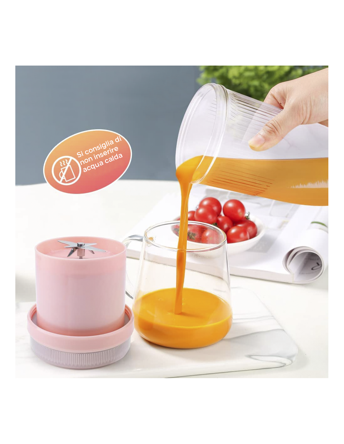 Portátil y con forma de botella, el Mini Juice es la fantástica innovación de poder tener sabrosos batidos y deliciosos jugos incluso cuando estás fuera de casa. Mini Juice es recargable por USB y portátil. Tiene un asa de silicona para facilitar su transporte. Puede colocarse en su bolso, puede llevarlo de viaje, en resumen, puede beber jugo fresco en cualquier momento y en cualquier lugar.