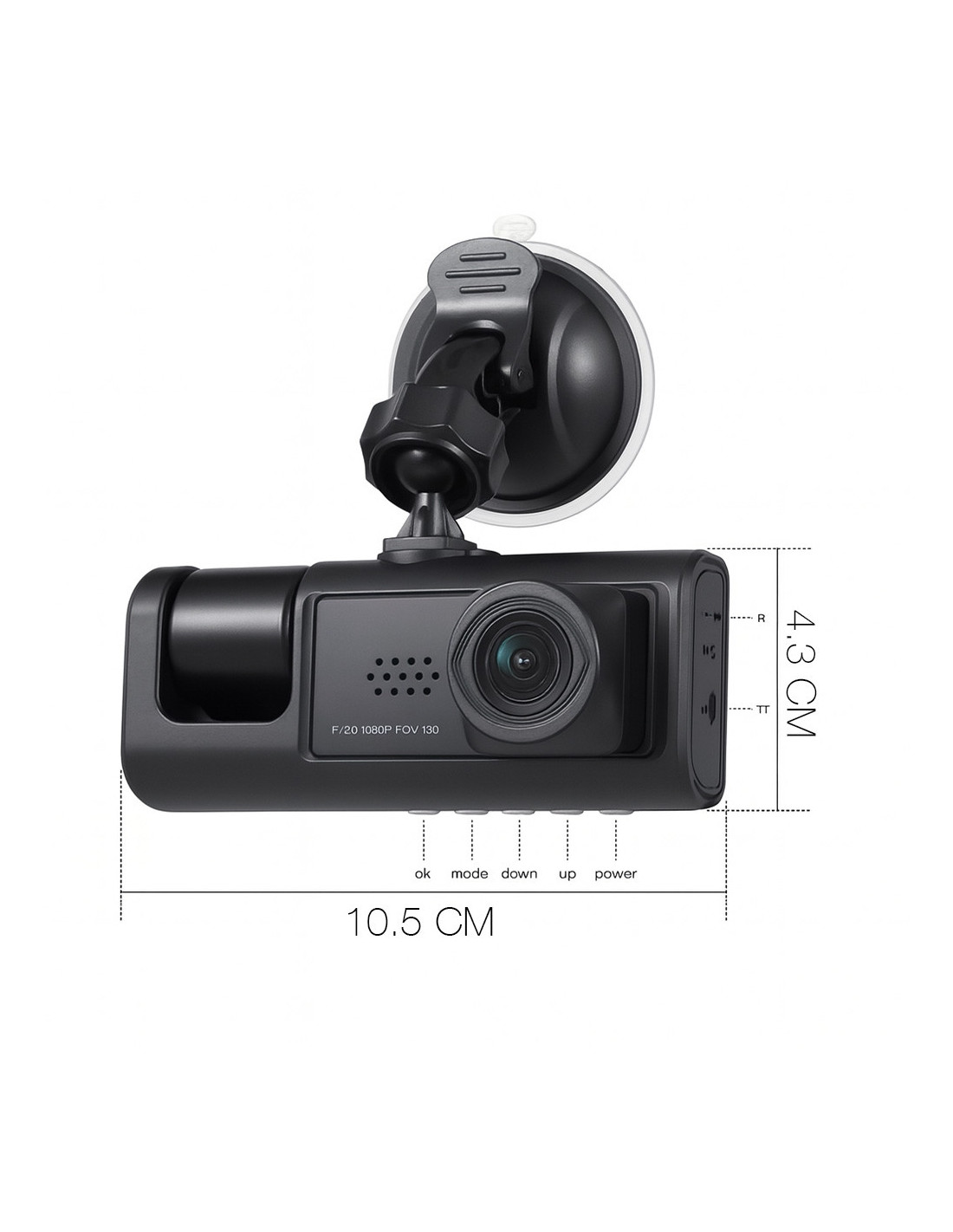 Equipada con un monitor TFT de 2,0 pulgadas, esta cámara para coche integra tres objetivos: frontal, interior y trasero. La cámara interior está equipada con 4 LED infrarrojos para una visión nocturna nítida, ideal para capturar con precisión los movimientos del conductor y los pasajeros incluso en condiciones de poca luz. El sistema adapta automáticamente la exposición para ofrecer grabaciones detalladas incluso en la oscuridad.