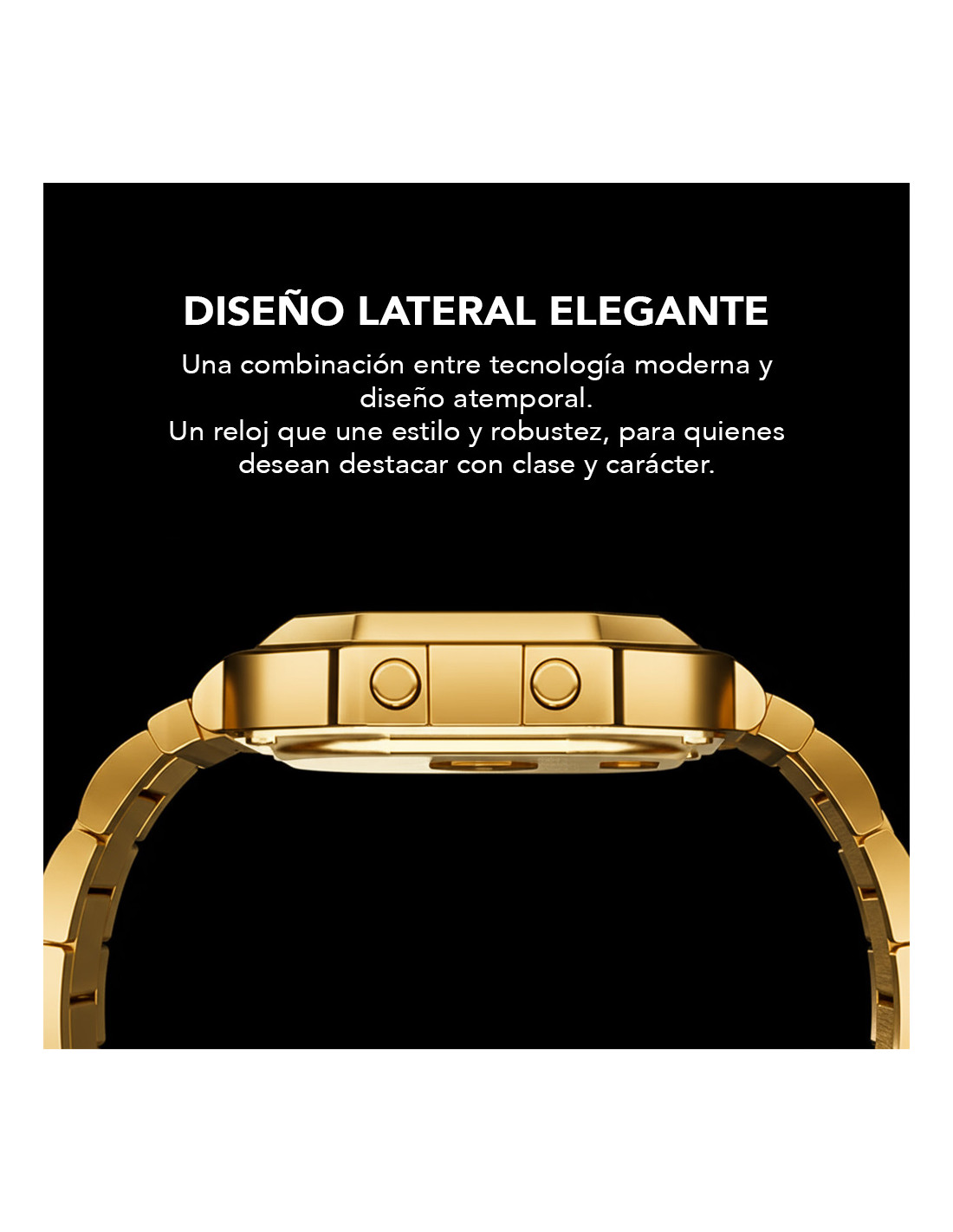 Gracias a su diseño moderno y a las variantes de color Oro, Plata, Negro y Multicolor (tonos únicos violeta/verde), se adapta a cualquier look, desde casual hasta business.