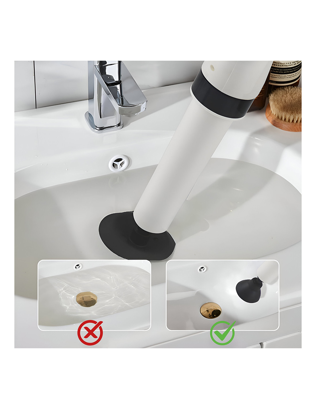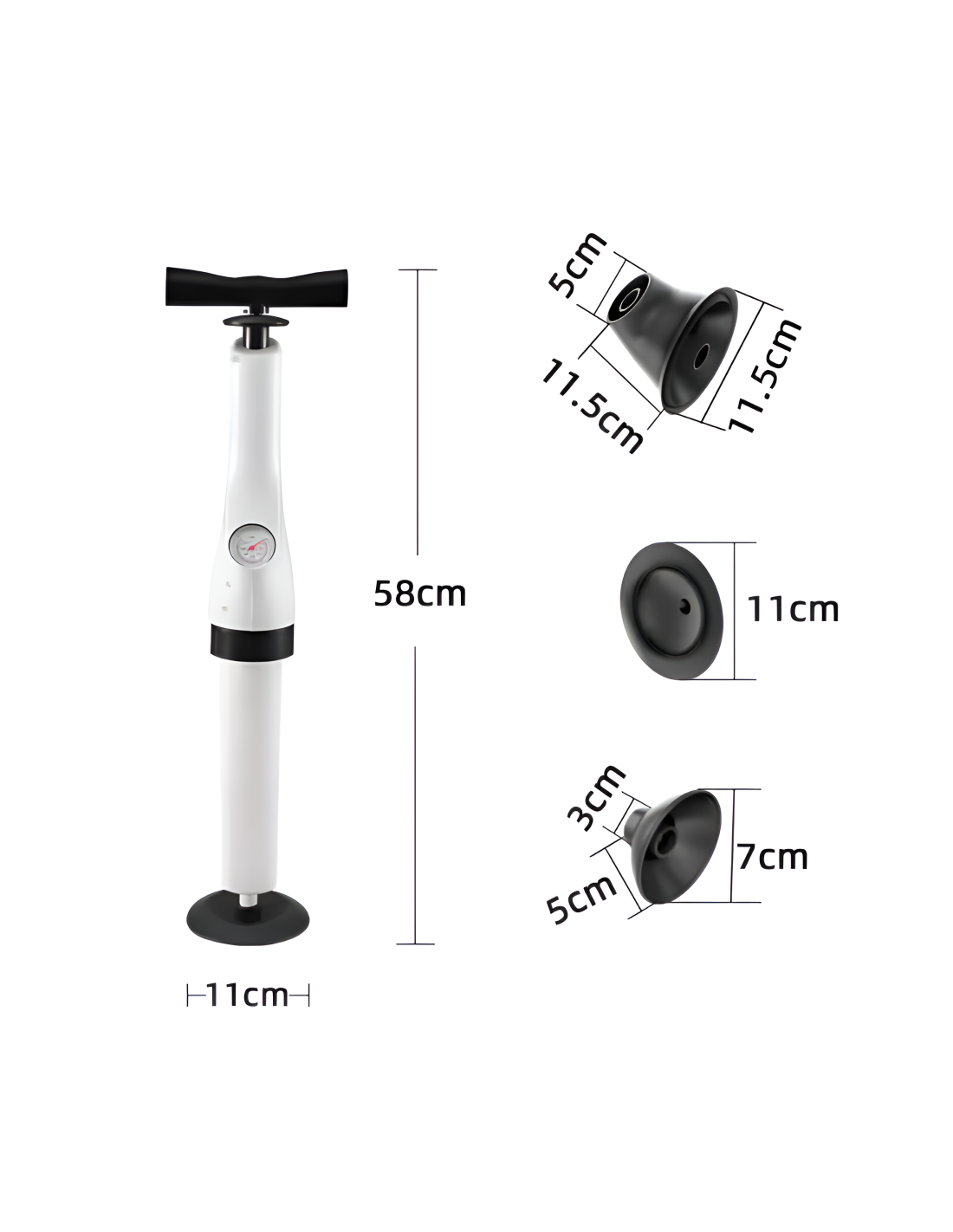 Equipada con un sistema de aire comprimido, esta bomba actúa en profundidad dentro de las tuberías, liberándolas de obstrucciones de diversa índole sin el uso de sustancias químicas, lo que la convierte en una solución ecológica y respetuosa con el medio ambiente. La empuñadura en T garantiza un agarre firme y cómodo, incluso durante un uso prolongado. El dispositivo se suministra con tres cabezales de goma intercambiables, cada uno diseñado para adaptarse a diferentes tipos de desagües como inodoros, lavabos, duchas y bidés. El botón integrado para el cambio de drenaje permite una rápida regulación del modo de uso, optimizando el rendimiento en función de la aplicación.