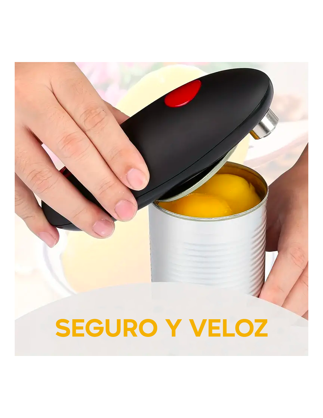 Revoluciona la apertura de latas con el abrelatas eléctrico automático. Equipado con tecnología avanzada, este dispositivo hace que el proceso de apertura sea rápido y sin esfuerzo. Su funcionamiento es intuitivo: coloca el abrelatas en la lata, presiona el botón y, con una rotación de 360°, abre la lata en solo 55 segundos, garantizando un rendimiento confiable cada vez. Alimentado por dos pilas AA (no incluidas), este abrelatas es ligero y fácil de transportar. Sus dimensiones compactas permiten guardarlo cómodamente en el cajón de la cocina, ahorrando espacio. Una de sus características distintivas es la capacidad para cortar las tapas de manera precisa, permitiendo la reutilización de las latas. Es adecuado para diferentes tipos de latas, incluyendo las redondas, elípticas y cuadradas.