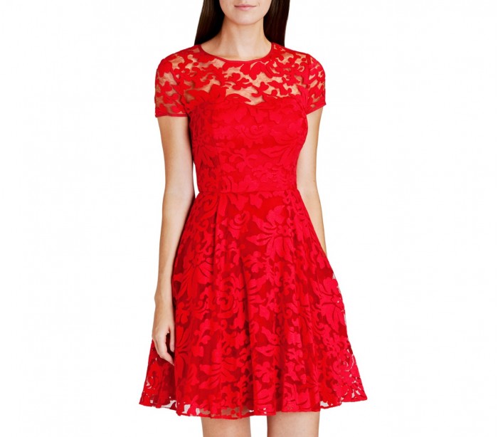 Tiene un estilo de ropa elegante y refinado. Vestido con cuello redondo realizado completamente en encaje.La falda acampanada está marcada por arrugas que dan movimiento al conjunto. Es ideal para la noche, un cóctel o una buena cena. Se combina con tacones altos y una bolsa pochette. Si quiere un look para el día, la puede usar con una simple chaqueta de cuero.
